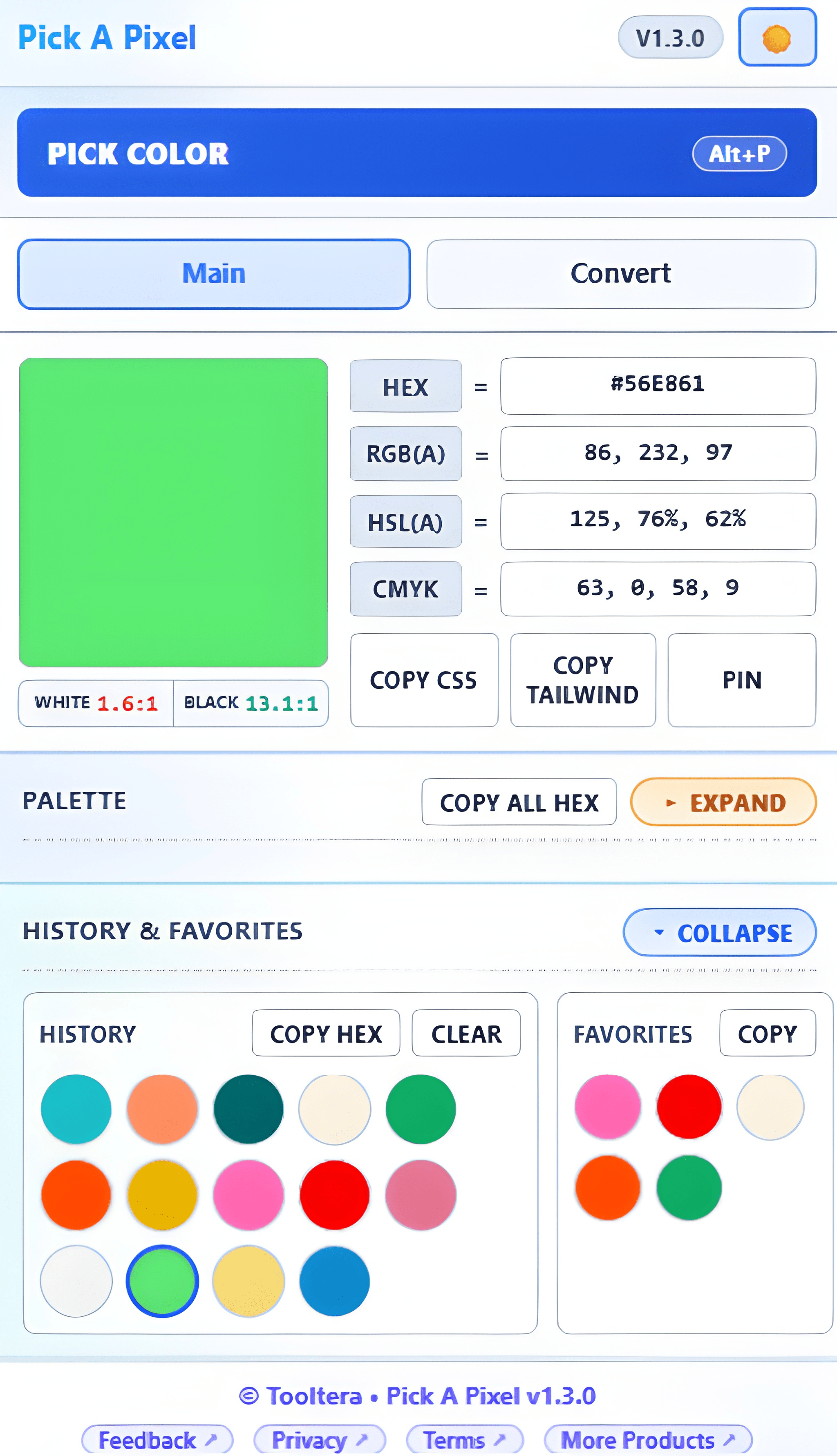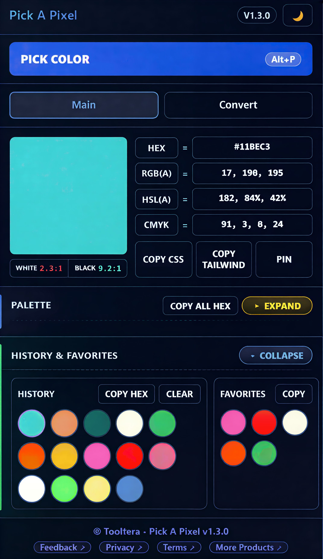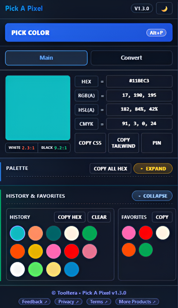 No more switching between color pickers, contrast checkers, and converters. Pick A Pixel brings your entire color workflow into a single streamlined extension.