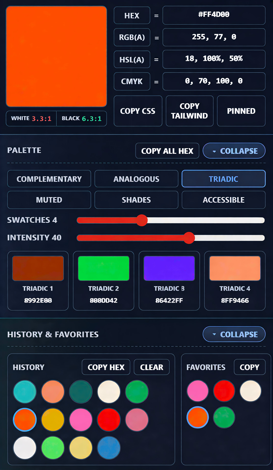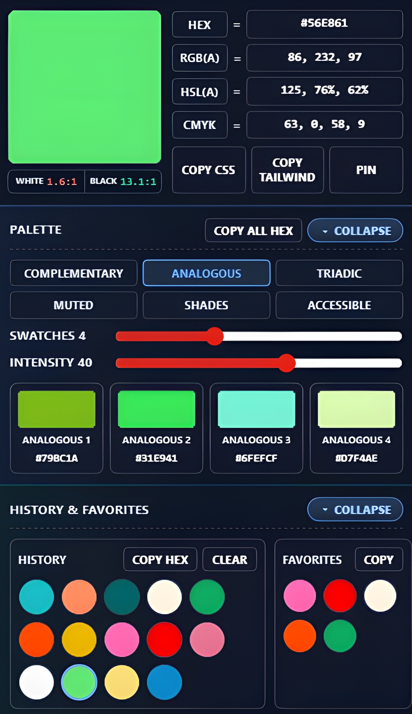 - Your palette settings (e.g., complementary mode, swatch count, intensity)