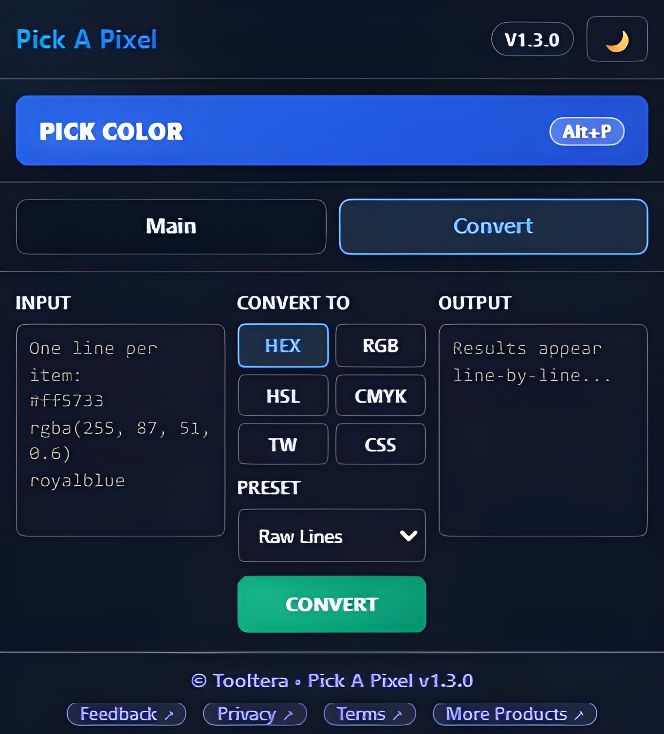 Paste multiple HEX, RGB, or HSL values and convert them to CMYK, Tailwind, or CSS-ready formats in seconds. Output is auto-copied so you can keep moving.